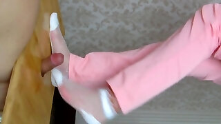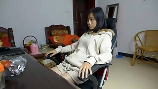 CUMSHOT ON FOOT: Tight Pussy Tiny Hot Chinese Maid takes all the jism on her Feet from the Big Beefstick Older Houseowner