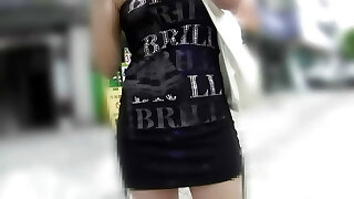 Asian With Bigass Taut Leather Leggings Wetlook White Shirt