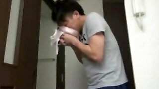Hot Japanese married woman wakes up her husband with her throat gargling his dick and makes him come in his hatch