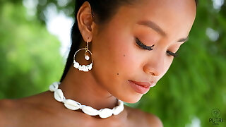 Asian Honey Putri Cinta Playing with Her Coochie On Empty Beach