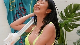 Asiatische Bathing Suit girls haben Gruppensex mit zu vielen harten Schwaenzen