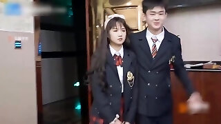 Asian teacher Wu Fangyi with glasses having intercourse with a student