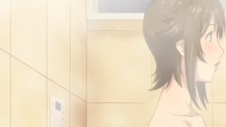 Busty anime self tugging in the bathroom