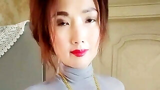 Chinese brunette with monstrous arse and nice natural tits is masturbating on webcam