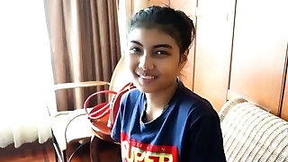 Ultra-cute skinny Filipina teen quietly cums all over white dick in hotel room