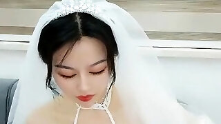 Sweet asian teenage gets shared by two lustful guys in bed after the wedding
