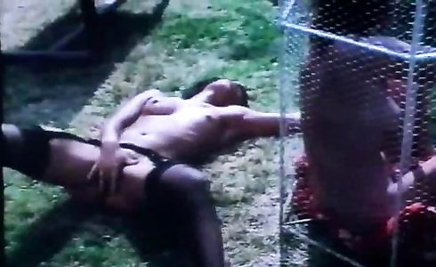 Weird guy give shard Domination & Submission lesson to his insatiable dark-haired female outdoors