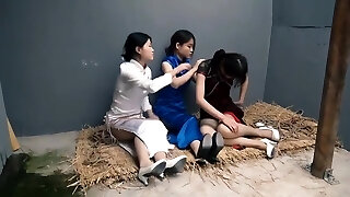 Japanese girls leather bondage with Japanese swim suit and tickling