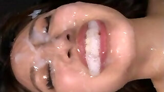 cute japanese swallows a load then gets a cum glazing!!
