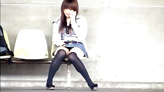 Japanese Amateur In Stockings Teases Pussy Cameltoe Under Skirt